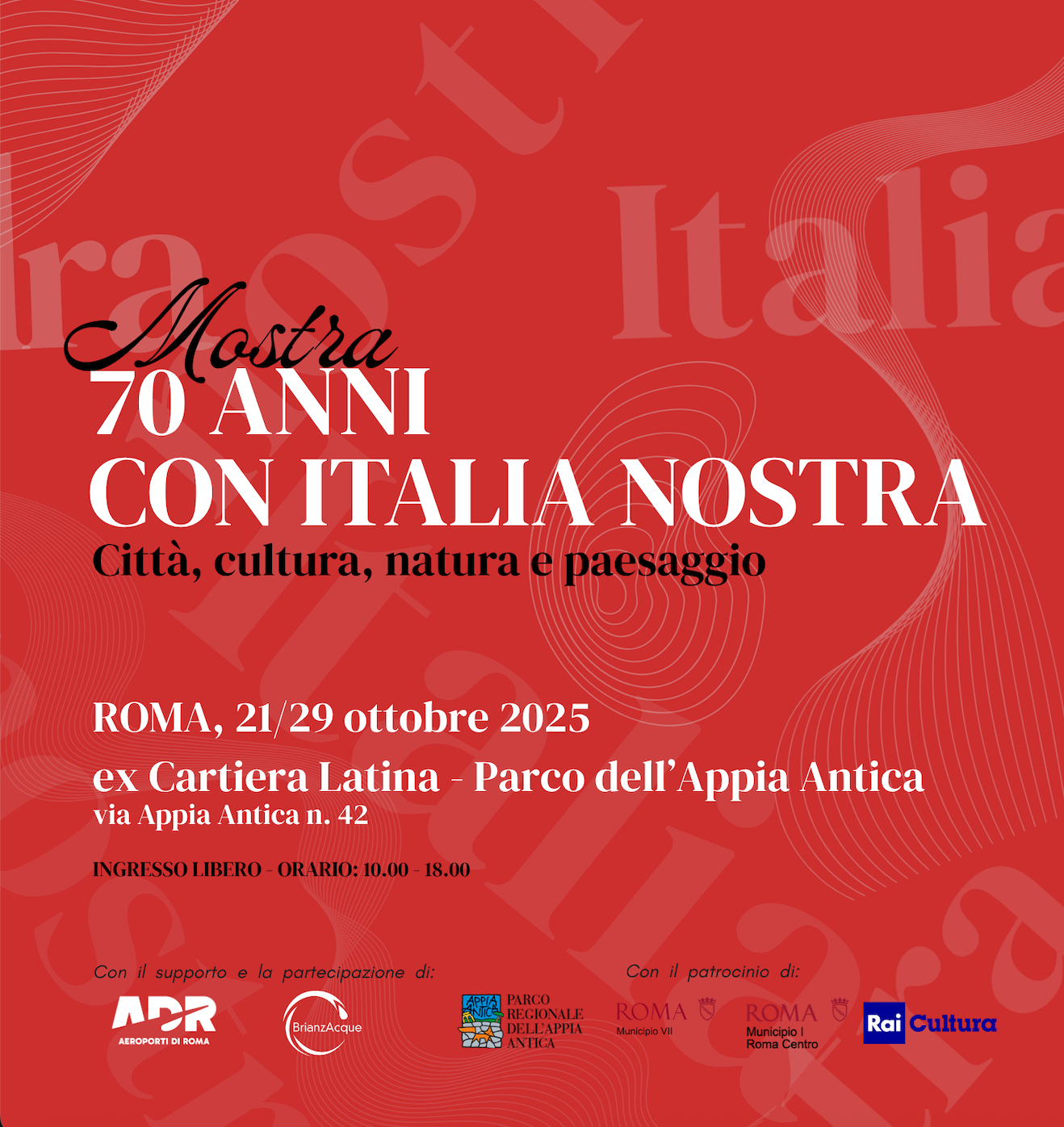 La mostra racconta settanta anni di impegno di Italia Nostra per la tutela dei beni culturali, ambientali e paesaggistici del Paese, attraverso l’esercizio di funzioni di vigilanza, denuncia, proposta, gestione ed educazione. Grazie a Italia Nostra si è formata nel tempo una consapevolezza diffusa della rilevanza della tutela per difendere e promuovere la bellezza e per valorizzare l’identità storica dell’Italia. Dopo la presentazione degli obiettivi e delle modalità di azione dell’associazione, il percorso della mostra si articola in quattro sezioni: la Città, il Paesaggio, il Patrimonio Culturale, l’Ambiente Naturale, approfondendo interventi e risultati. Testi e curatela scientifica: Michele Campisi, con la collaborazione di Maria Rosaria Iacono, consigliera nazionale Italia Nostra, e Luca Carra, presidente di Italia Nostra Milano Nord. Grafica a cura di Dafne Cola. L’esposizione si avvale del patrocinio di Aeroporti di Roma, BrianzAcque, Parco regionale Appia Antica, Municipio Roma VIII e Roma I, Rai Cultura.