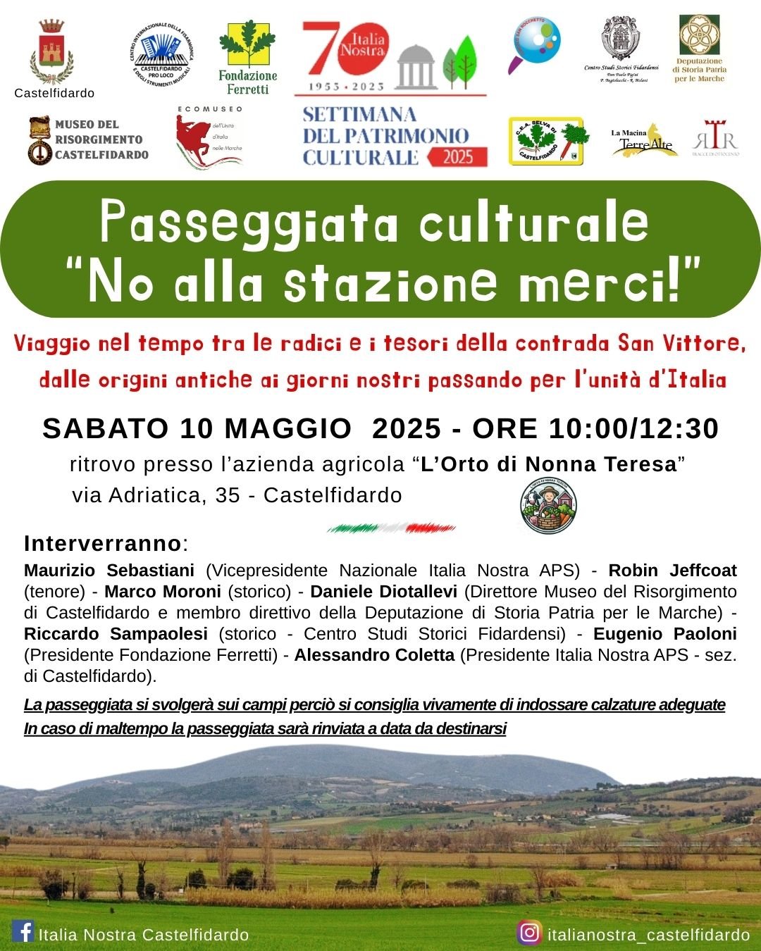 In occasione della “SETTIMANA DEL PATRIMONIO CULTURALE”, la sezione ITALIA NOSTRA APS di Castelfidardo, in stretta collaborazione con Istituzioni e Associazioni del territorio, organizza una suggestiva passeggiata culturale per sensibilizzare e tutelare un’area che rischia di essere compromessa per sempre.